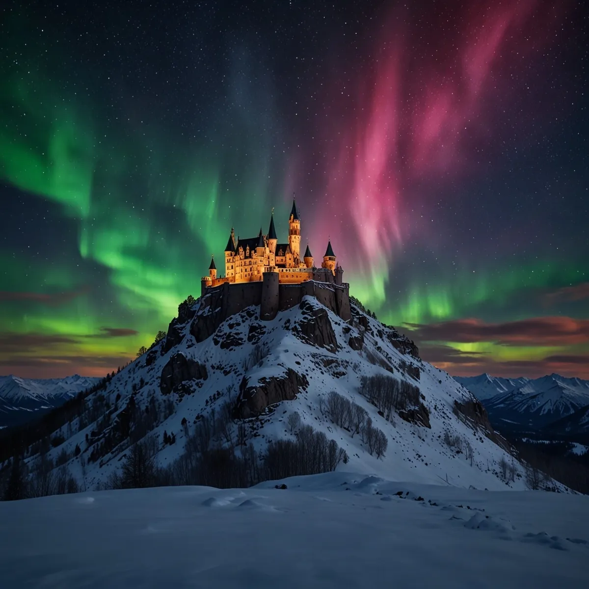 Aurora Castle: Enchantment on Snowy Peaks