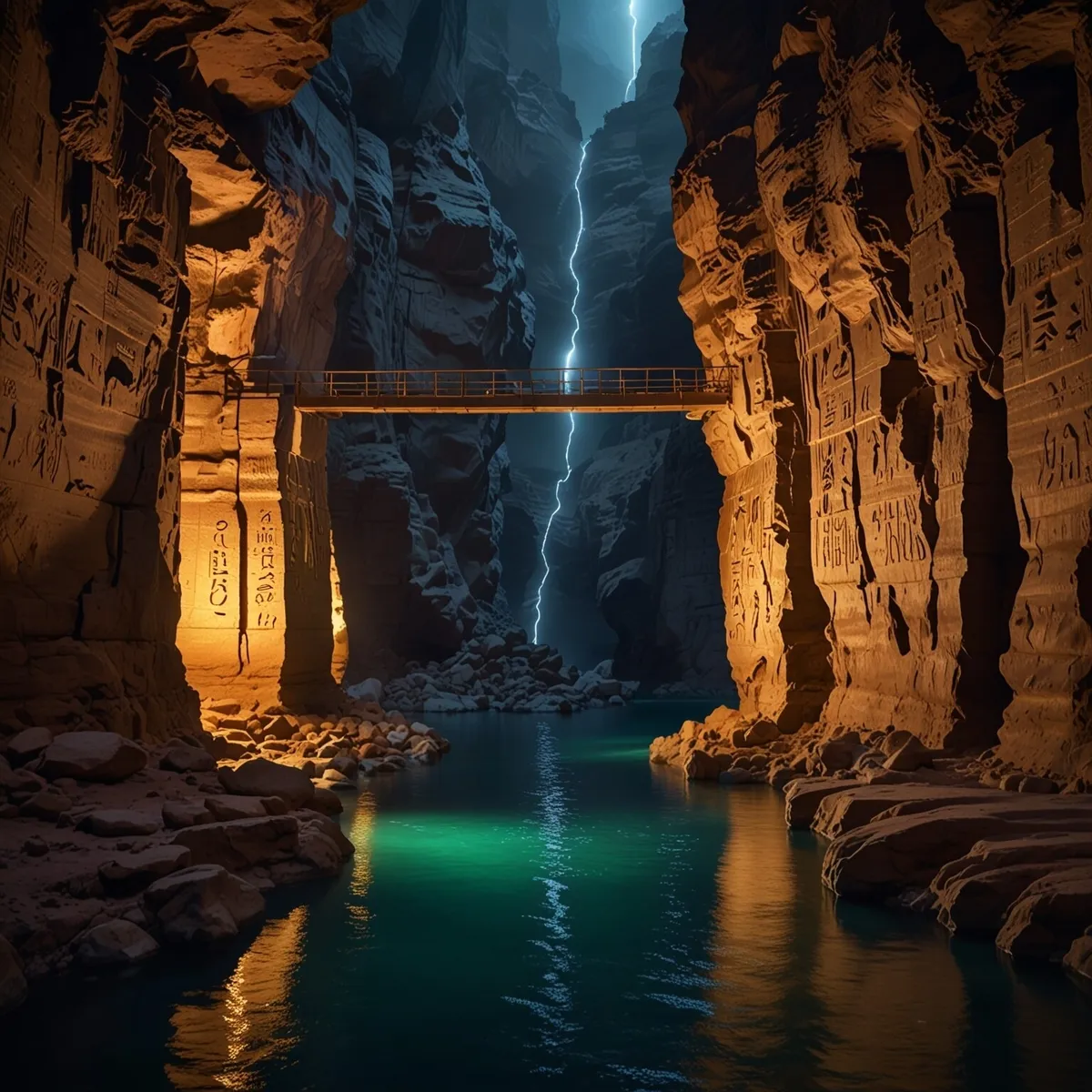 Mystical Canyon - Glowing Hieroglyphs and Floating Bridge