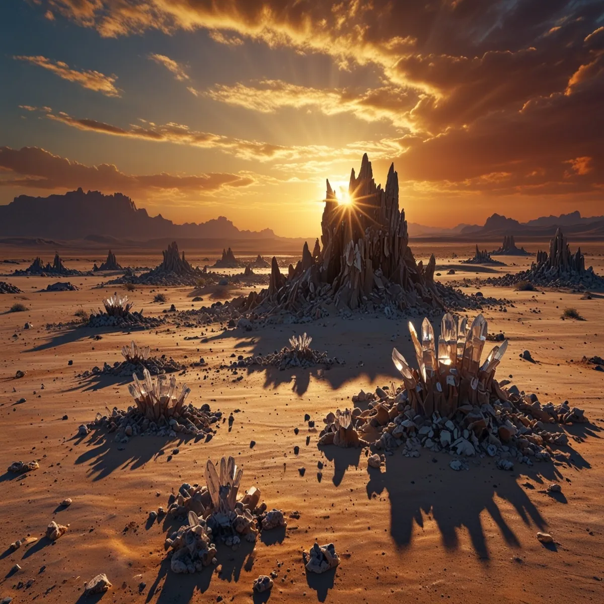 Alien Desert - Sunset and Towering Crystal Formations